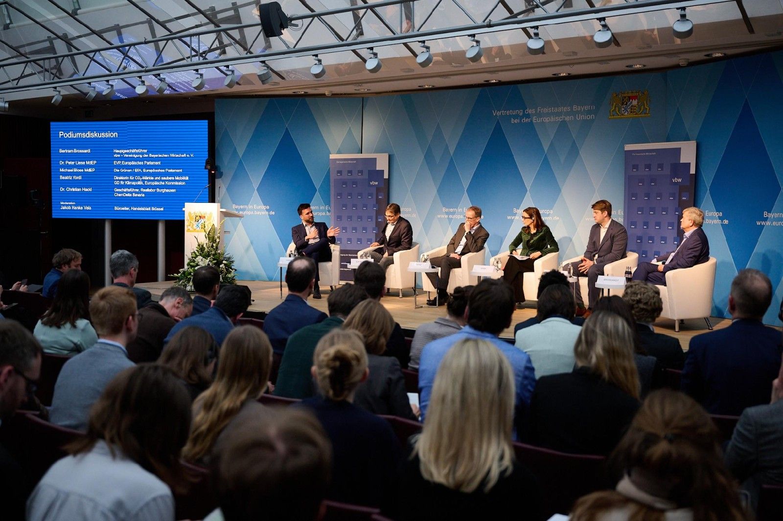 Bertram Brossardt betonte, dass die Bayerische Wirtschaft klar zu Klimazielen und marktwirtschaftlichen Instrumenten steht. Zugleich machte er den Ernst der Lage deutlich: „Der Emissionshandel stellt die europäische Industrie vor enorme Herausforderungen – in Zeiten, in denen die Wirtschaft in der EU auf dem Kipppunkt steht, während gleichzeitig entscheidende Rahmenbedingungen für eine erfolgreiche Industrietransformation fehlen.“ Letzteres unterstrich auch Dr. Andrej Guminski, der auf Basis einer Studie für die vbw bestehende Hürden für die industrielle Transformation und mögliche Handlungsoptionen wie eine Weiterentwicklung des ETS 1 aufzeigte.
