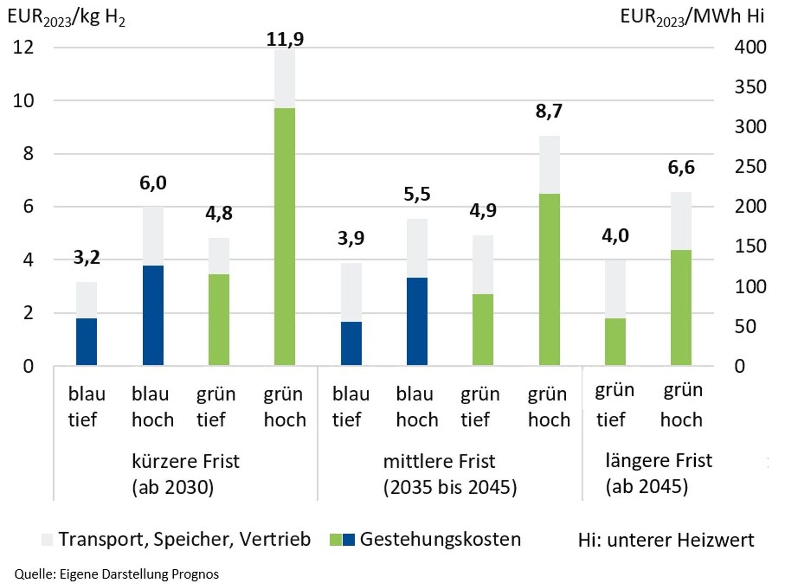 Wasserstoffkosten für die Industrie