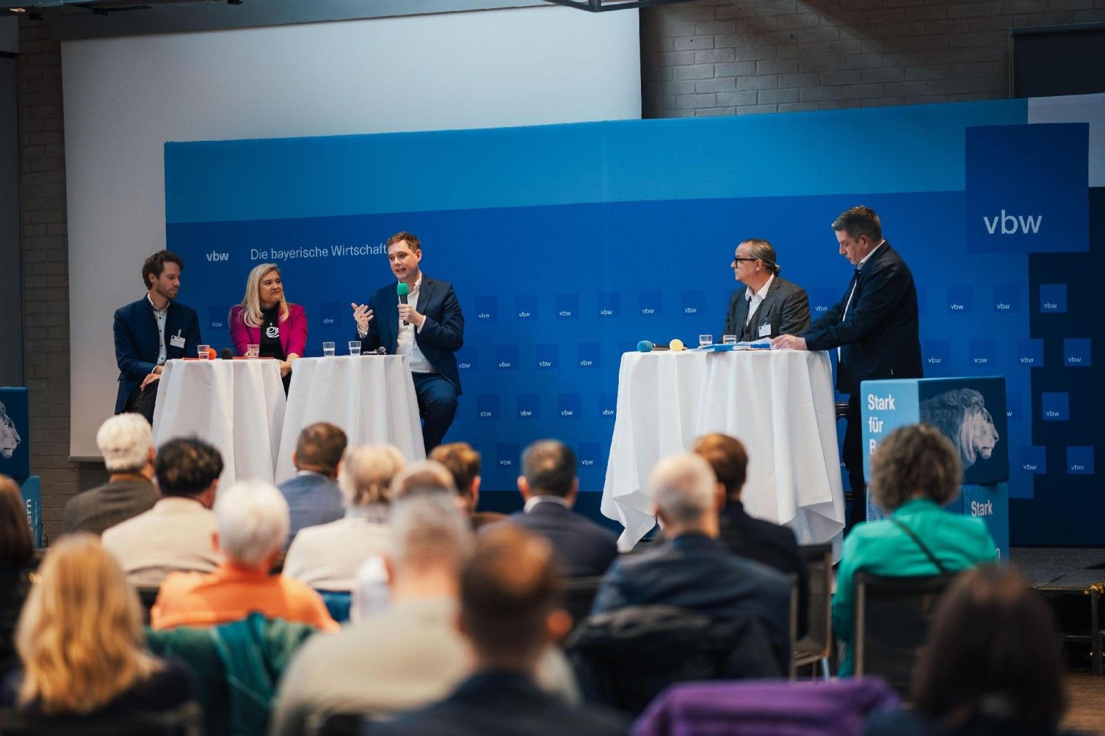 Die Podiumsteilnehmer*innen stellten übereinstimmend fest, dass am Standort Bamberg Rahmenbedingungen gewährleistet werden müssen, die Unternehmen in der Transformation unterstützen. Dazu gehören vor allem eine digitalisierte, bürokratiearme Verwaltung, die zügige Vollendung der Energiewende und eine flächendeckende, höchstleistungsfähige Kommunikationsinfrastruktur (Glasfaser und Mobilfunk).