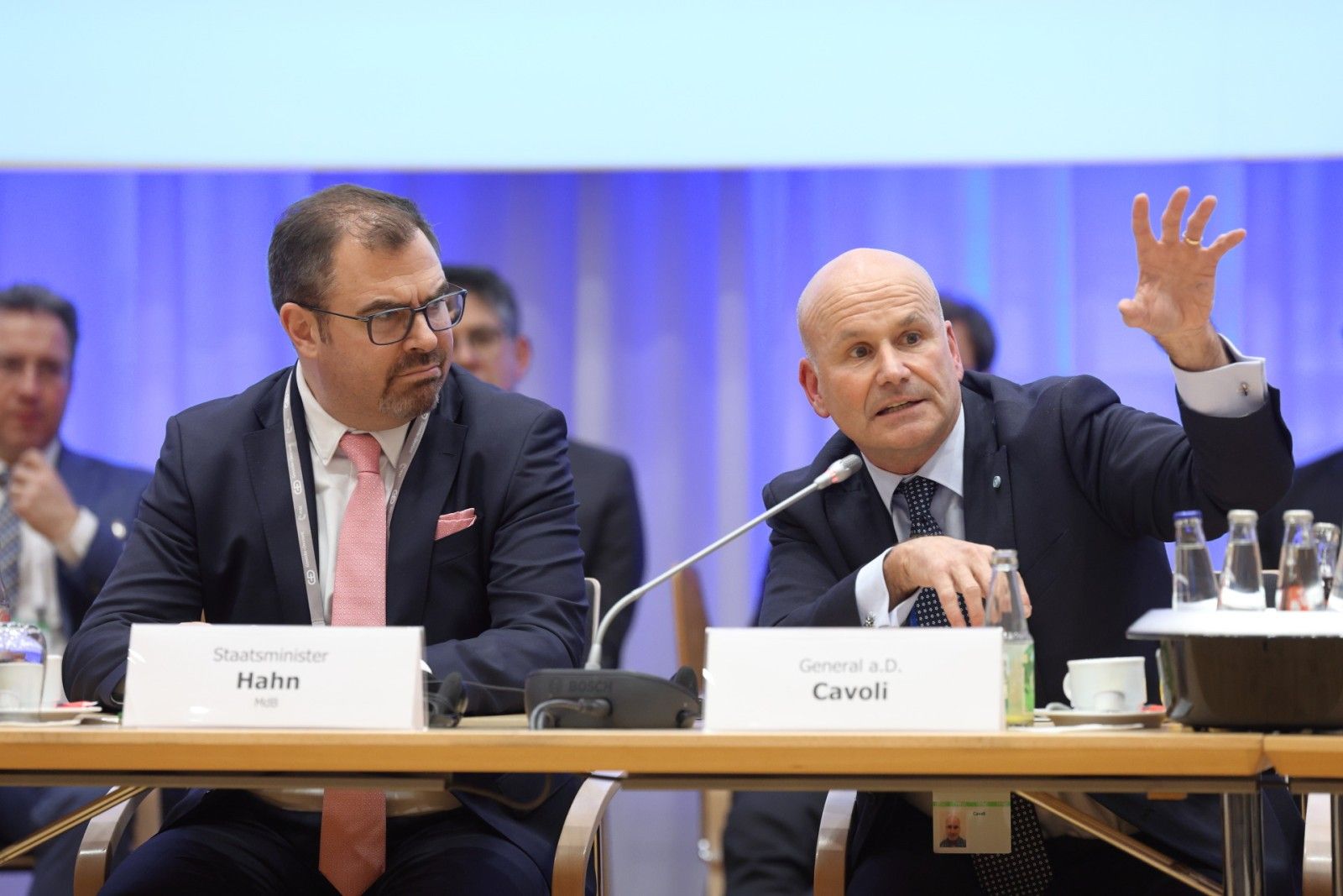 Die Teilnehmer*innen des Runden Tisches waren sich einig, dass Bayern zur Stärkung der Verteidigungsfähigkeit einen maßgeblichen Beitrag leisten kann. Wichtige Impulse in der Diskussion setzten unter anderem der Staatsminister im Auswärtigen Amt Florian Hahn, General Markus Laubenthal, Chief of Staff im SHAPE, dem Obersten Hauptquartier der Alliierten Streitkräfte in Europa, der Chief Executive der Europäischen Verteidigungsagentur Generalleutnant André Denk, seine Exzellenz Minister Jens Stoltenberg, der CEO von Airbus Defence and Space Dr. Michael Schöllhorn und Florian Seibel, CEO von Quantum Systems.