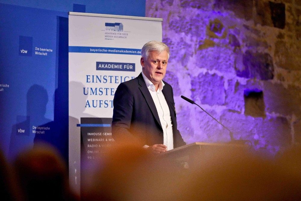 Auf der Kooperationsveranstaltung der vbw und der Akademie für Neue Medien Kulmbach (Bildungswerk) e. V. sprach Gastredner Prof. Dr. med. Tobias Gantner, Geschäftsführer der HealthCare Futurists GmbH in Köln, über die transformative Kraft der Digitalisierung im Gesundheitswesen. Zudem verlieh die Akademie für Neue Medien Kulmbach den Johann-Georg-August-Wirth-Preis an Dr. Thorsten Schmiege, Präsident der Bayerischen Landeszentrale für neue Medien, für seine journalistische Arbeit sowie an den Kulmbacher Landrat Klaus Peter Söllner für sein Lebenswerk.