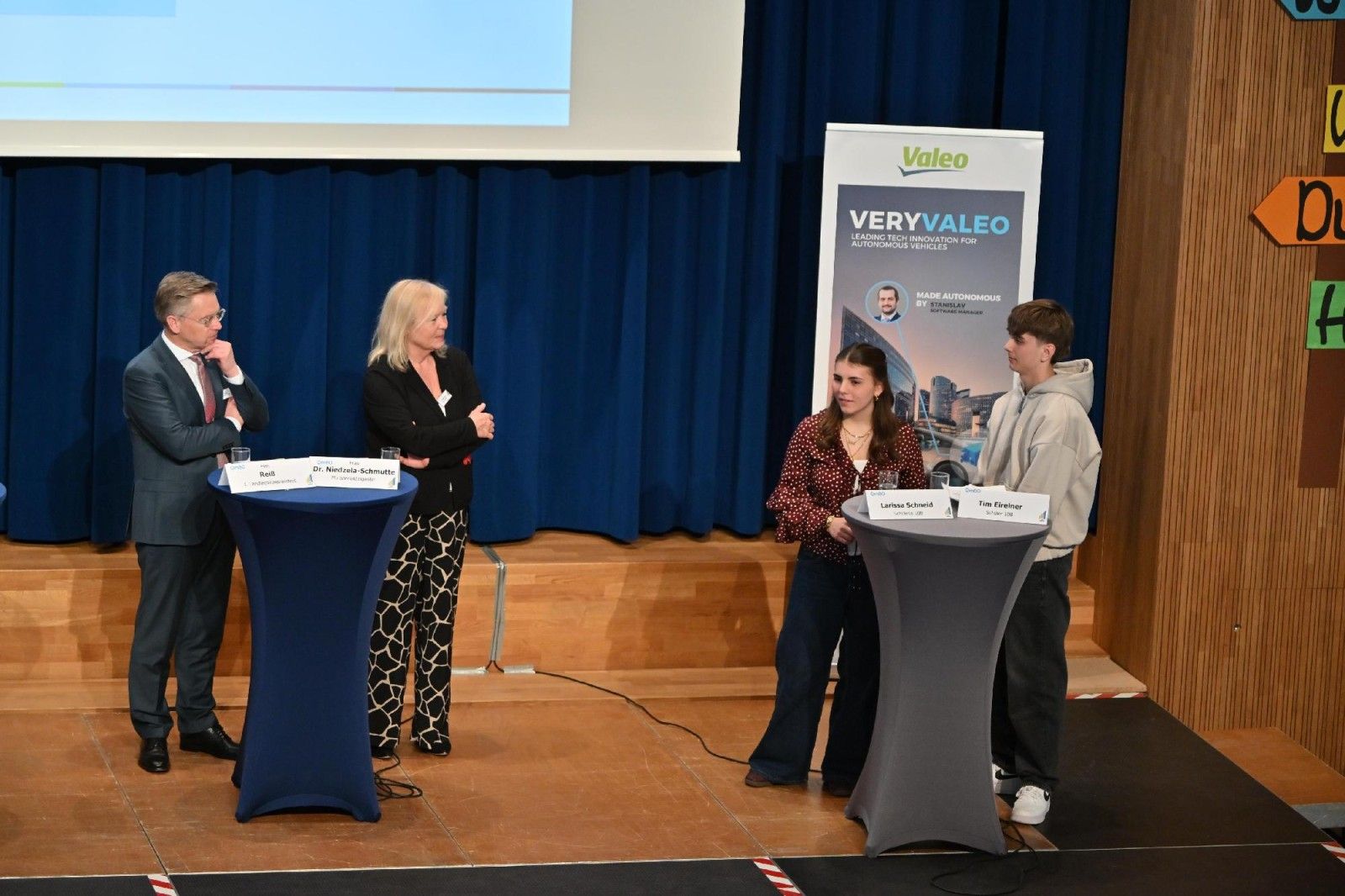 Am 09. März 2026 tauschten sich Dr. Christof Prechtl, stv. Hauptgeschäftsführer der vbw – Vereinigung der Bayerischen Wirtschaft e. V., Tobias Reiß, MdL, 1. Vizepräsident des Bayerischen Landtages, und Ministerialdirigentin Dr. Andrea Niedzela-Schmutte, Leitung der Abteilung VIII des Bayerischen Staatsministeriums für Unterricht und Kultus, mit den Schüler*innen der Anton-Jaumann-Realschule in Wemding zum aktuell laufenden Schulversuch „Qualitätsmanagement Berufliche Orientierung an weiterführenden Schulen“ (QmBO) aus.