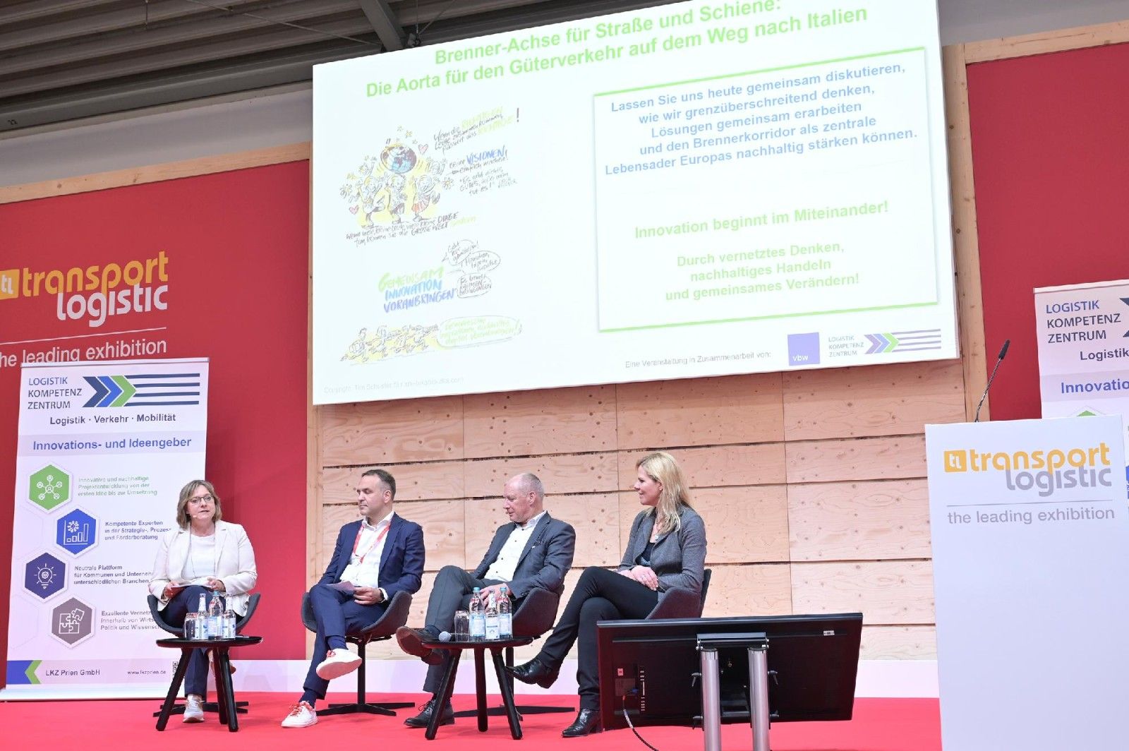 Beim gemeinsamen Fachforum von vbw und LKZ Prien auf der Messe transport logistic am 03. Juni 2025 ging es um die Brenner-Achse für Straße und Schiene als einer Aorta für den Güterverkehr auf dem Weg von und nach Italien.