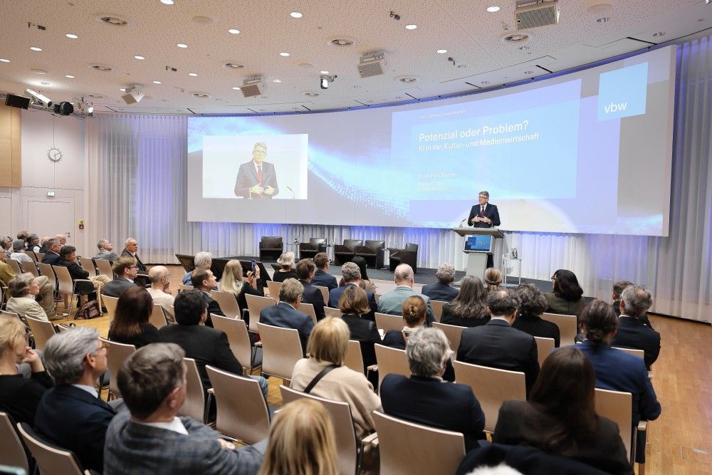 Beim 14. Medienkongress der vbw am 19. November 2025 lag der Fokus auf der Neujustierung der Kultur- und Kreativwirtschaft und auf den Herausforderungen und Potenzialen von KI für die Kreativbranche. Der Kongress beleuchtete außerdem die Rahmenbedingungen, die erforderlich sind, um die Potenziale voll auszuschöpfen. Zudem war „Smart Creativity“ – das sich sinnvolle Ergänzen von menschlicher und Künstlicher Intelligenz – ein zentrales Thema. Letztlich geht es um die grundlegende Transformation kreativer Wertschöpfung, so vbw Hauptgeschäftsführer Bertram Brossardt bei seiner Begrüßung.
