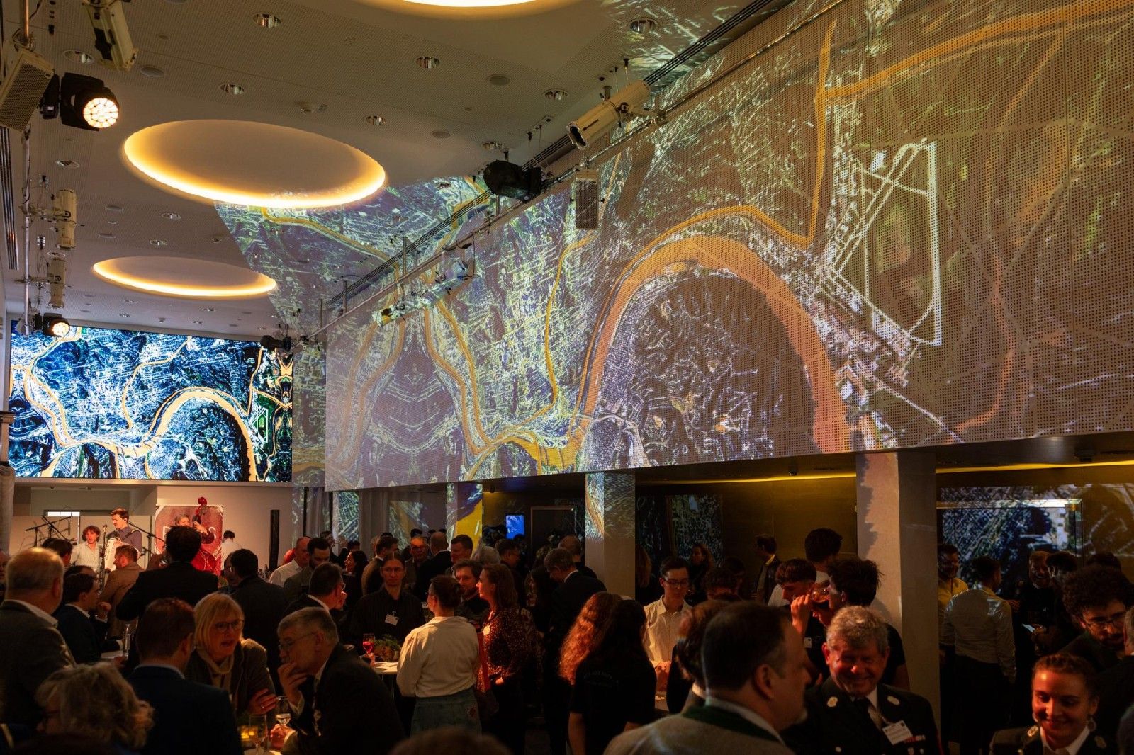 Die Vorstellung überzeugender und inspirierender Projekte sowie viele herzliche Begegnungen prägten die ganz besondere Atmosphäre dieses Abends. HideNSee nannte die Videokünstlerin Manuela Hartel ihre Installation, die das Foyer mit abstrakt bearbeiteten NASA-Bilder in einen eindrucksvollen Spiegel unserer natürlichen Lebensgrundlagen verwandelte. Begleitet wurde die Installation vom Mundart-Folk der oberbayerischen Band Reiwas.
