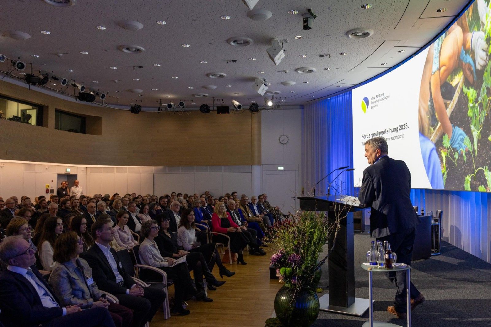 Höhepunkt des Abends war die Auszeichnung von 18 Projekten aus allen bayerischen Regionen für ihren großem Einsatz und die Verantwortung, die sie mit ihren innovativen Ansätzen für die nachhaltige Stärkung der Lebensgrundlagen in Bayern übernehmen. Eine Liste der preisgekrönten Projekte findet sich hier: Preisträger*innen 2025